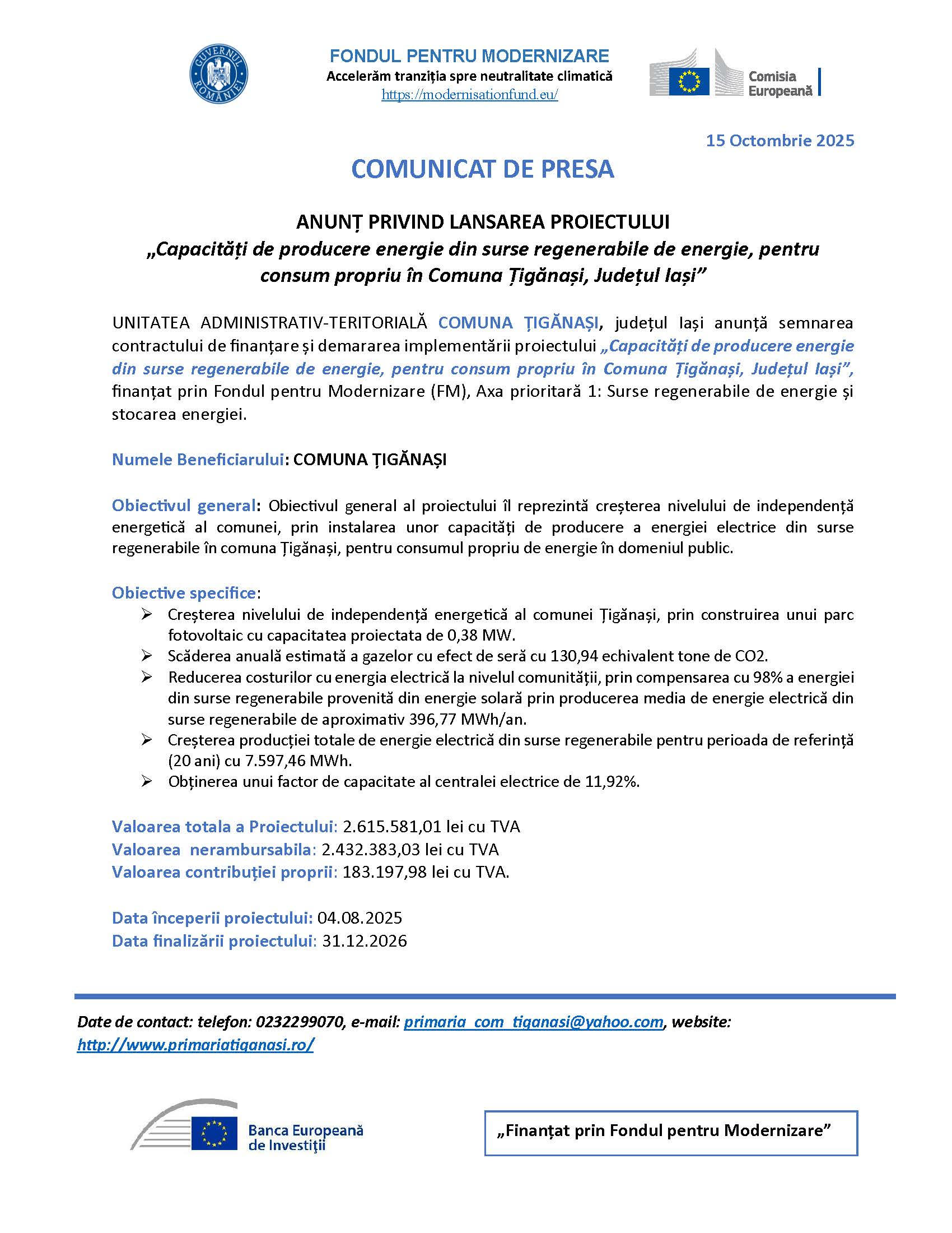Comunicat de presă UAT COMUNA TIGANAȘI