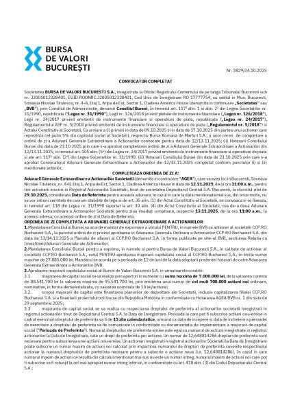 AcasăzppCONVOCATOR COMPLETAT BURSA DE VALORI BUCUREȘTI S.A.