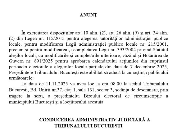 AcasăNewsANUNŢ TRIBUNALUL BUCUREȘTI