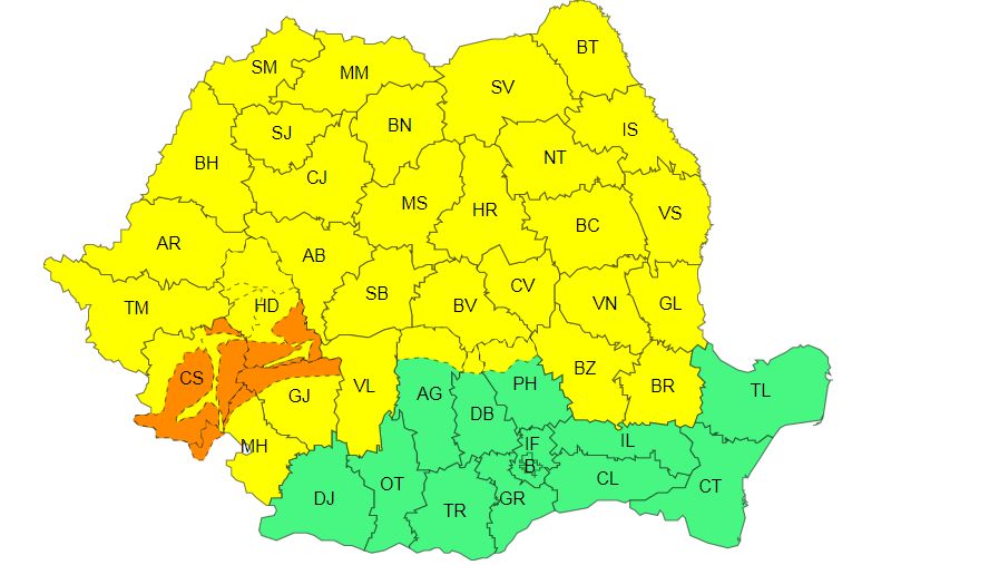 De asemenea, ANM a emis în cursul zilei precedente un Cod galben, pentru intervalul 05 ianuarie, ora 10:00 – 06 ianuarie, ora 10:00.
