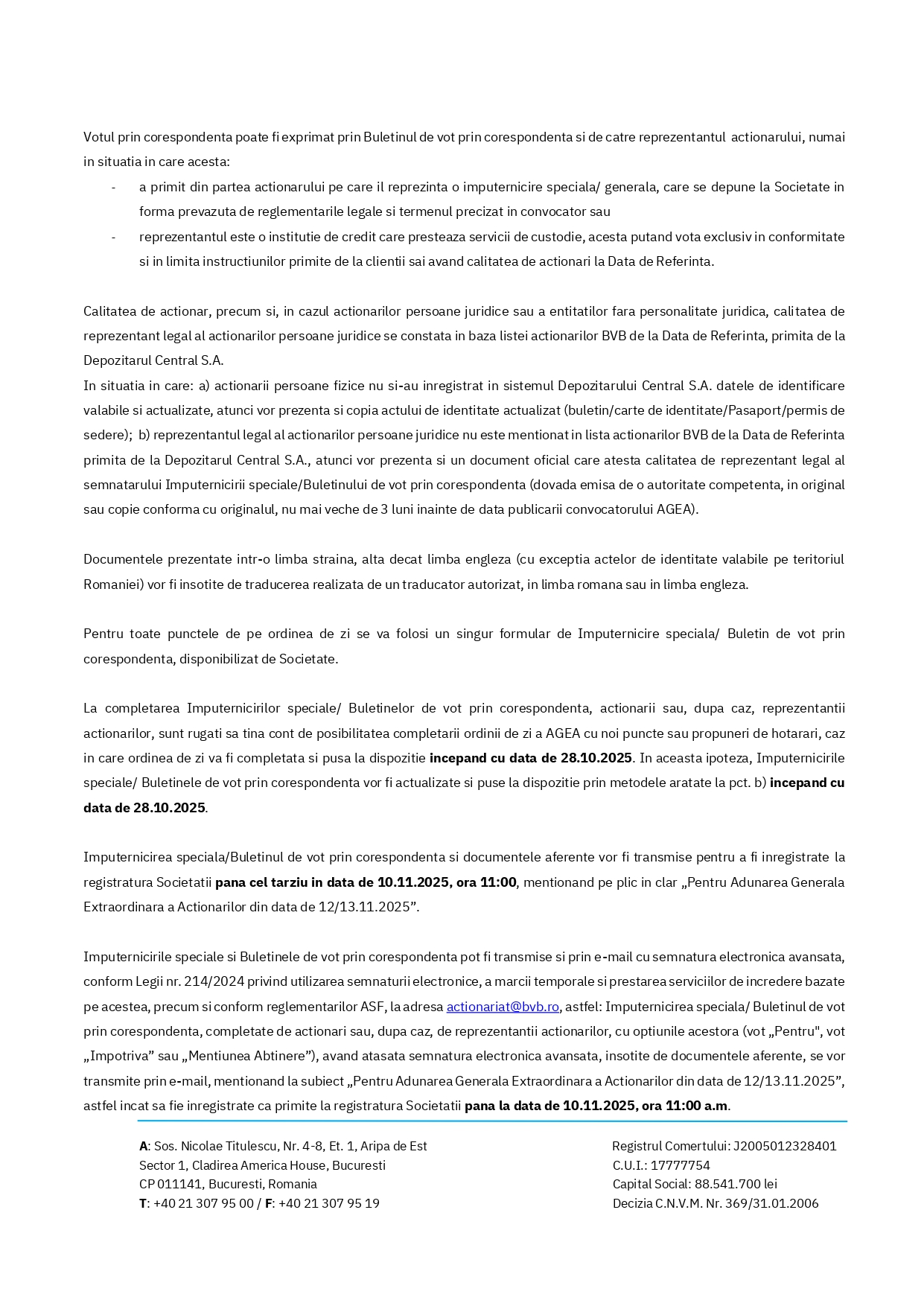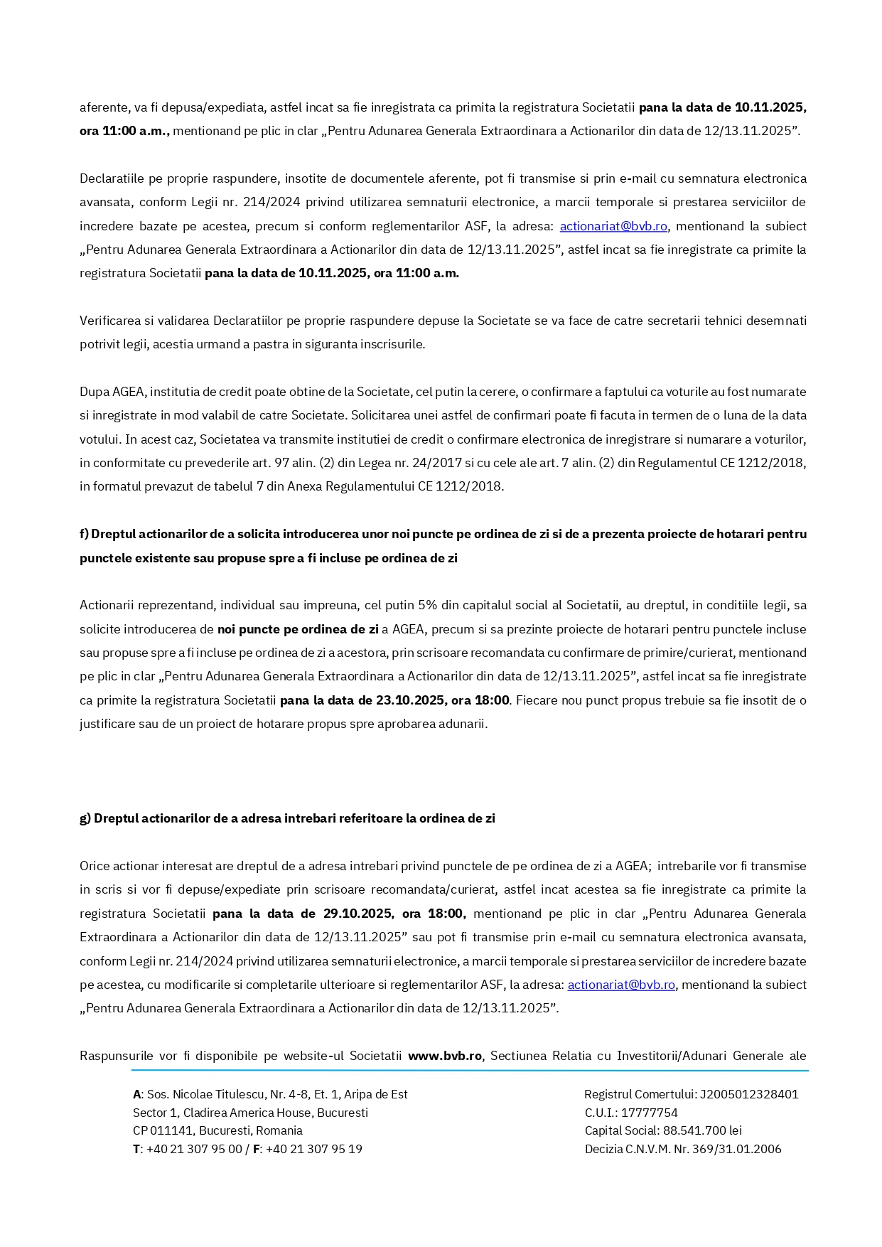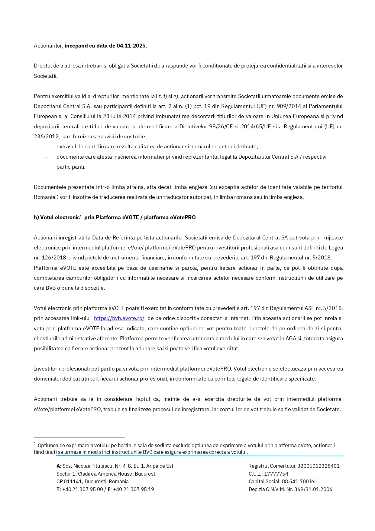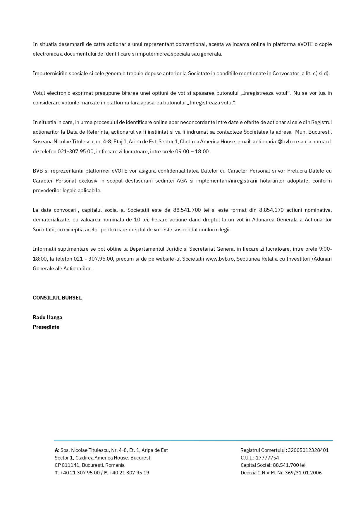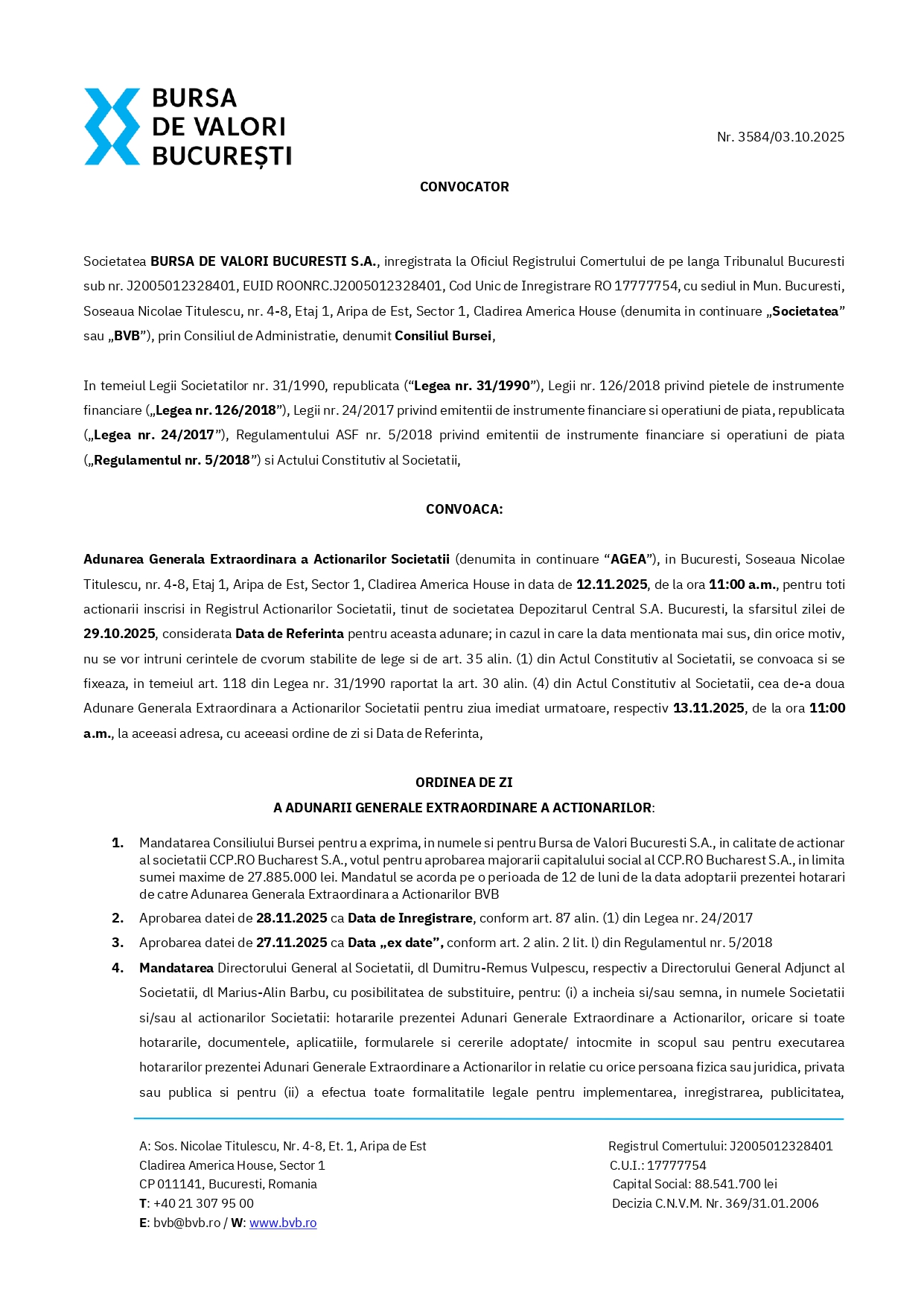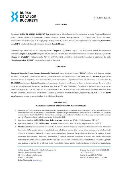 Convocator BURSA DE VALORI BUCURESTI S.A.