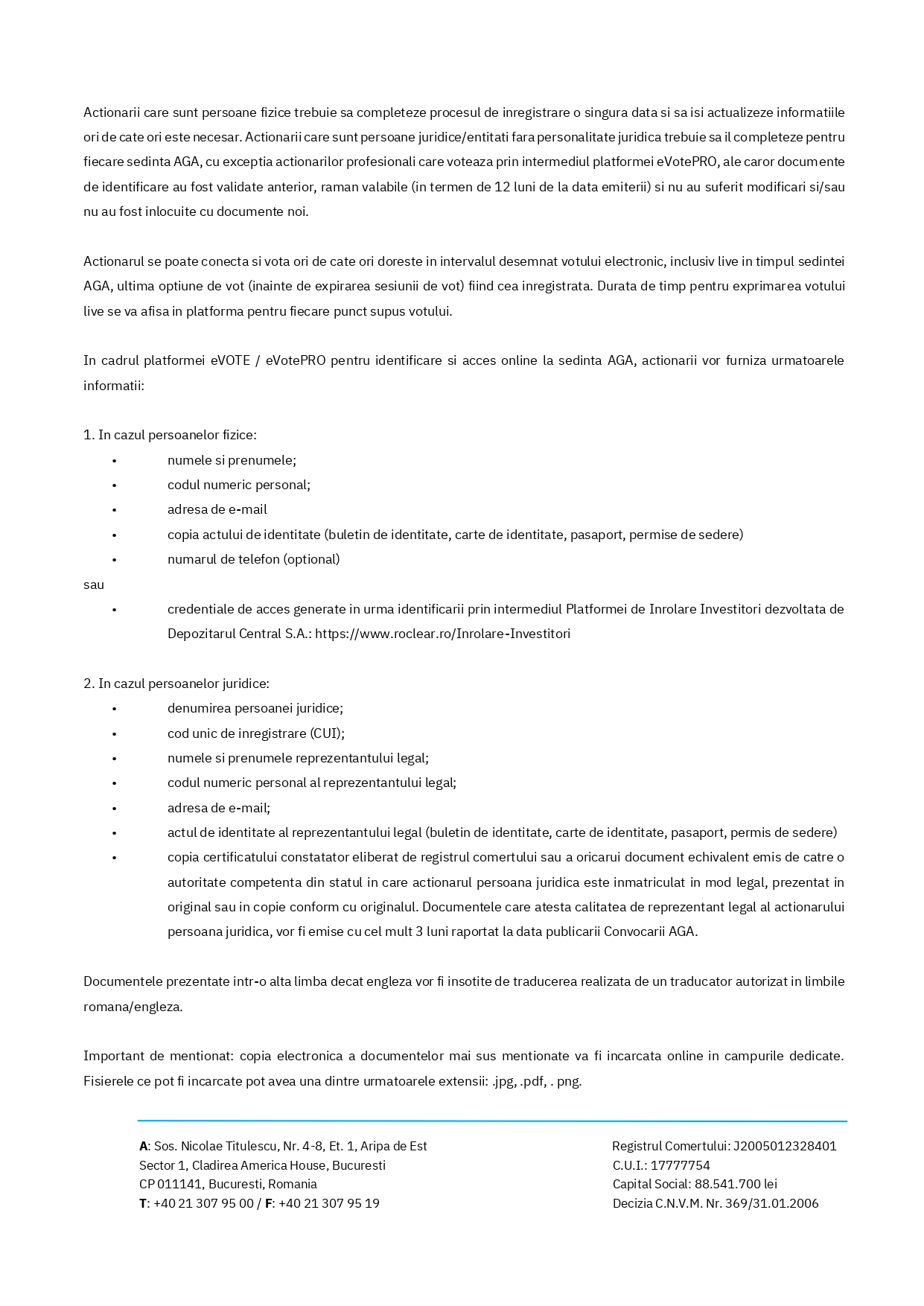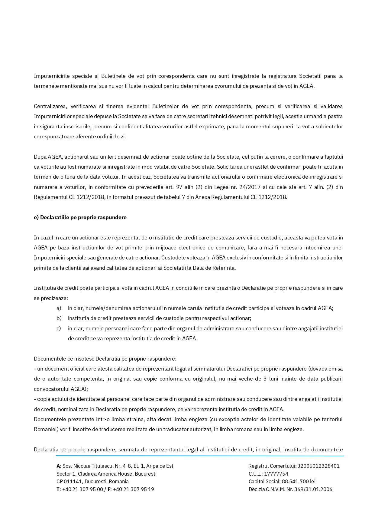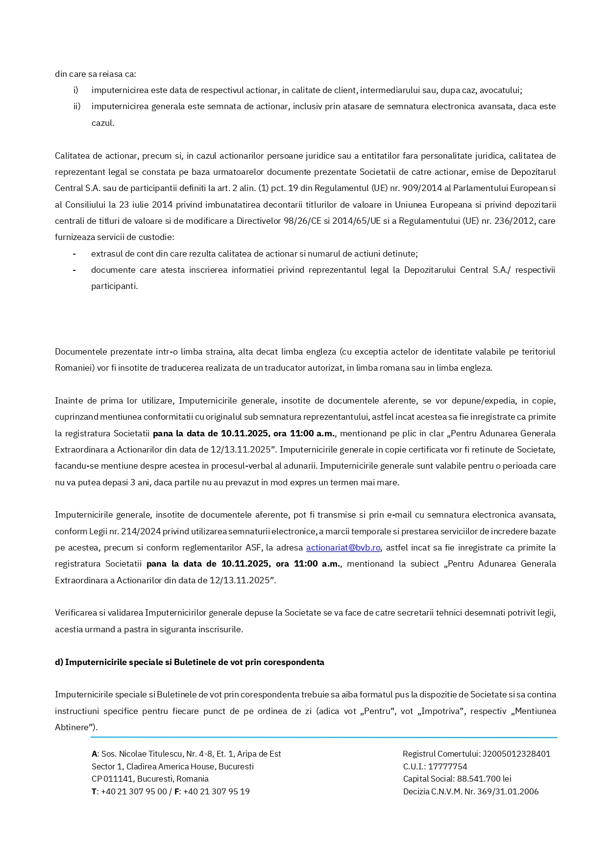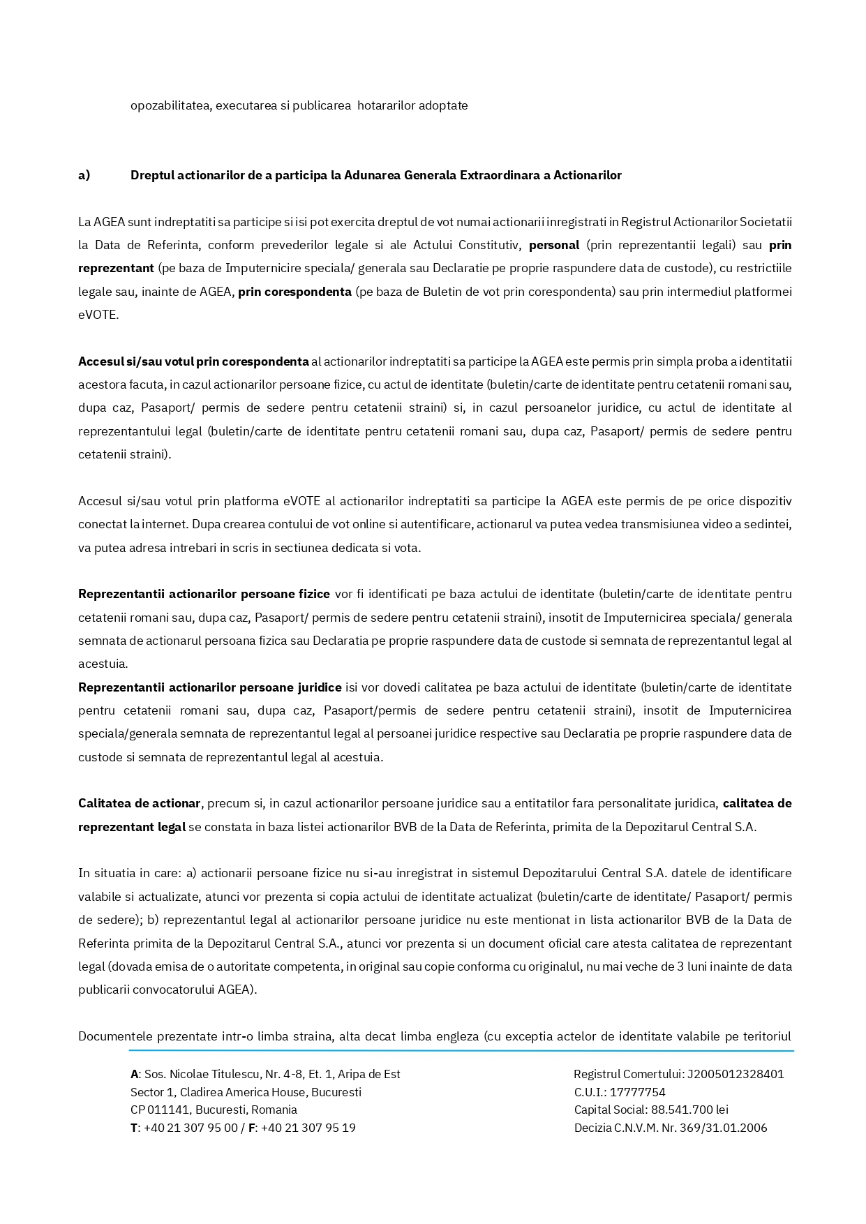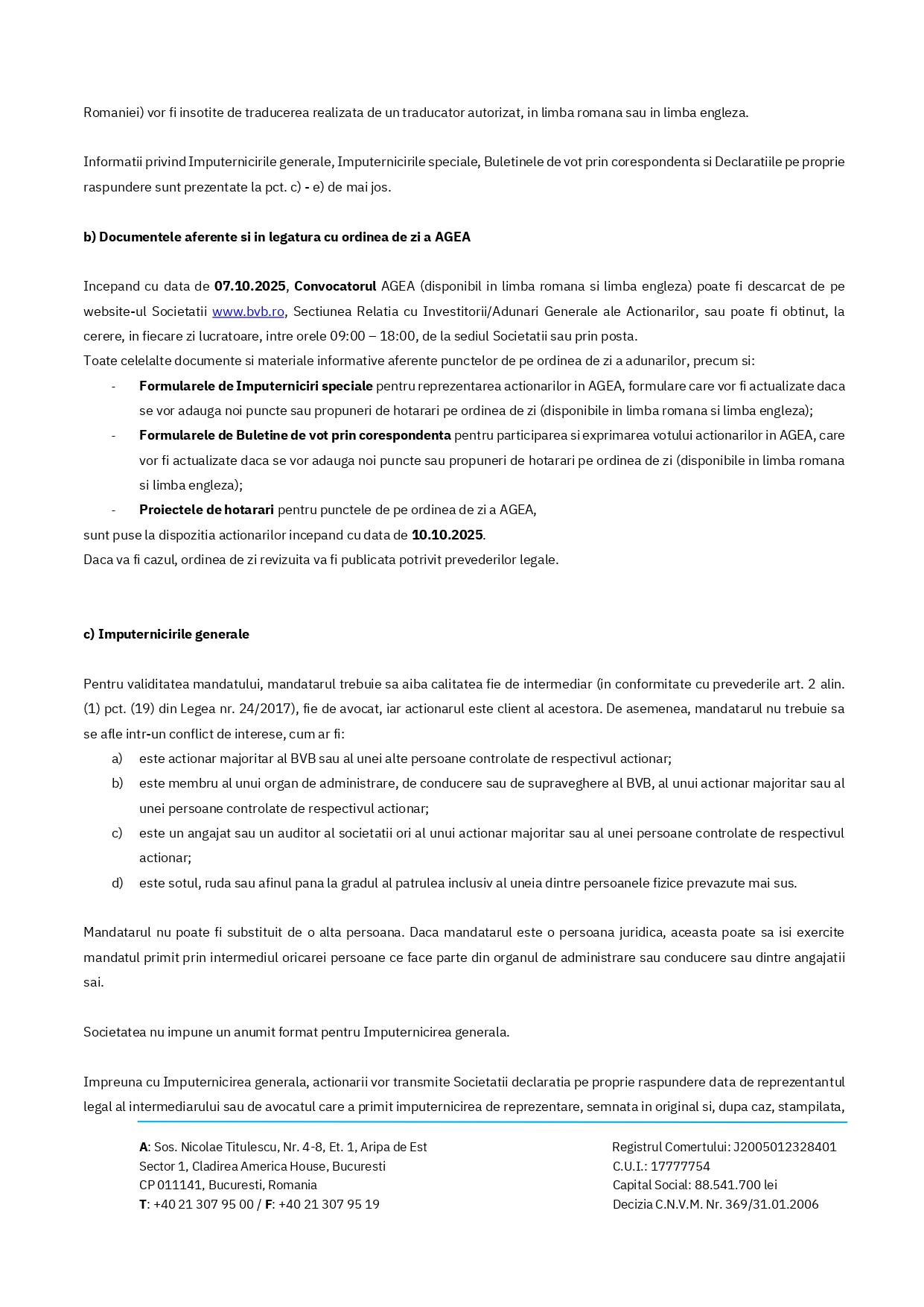 Convocator BURSA DE VALORI BUCURESTI S.A.