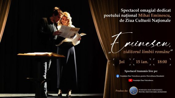 De Ziua Culturii Naționale, Fundația Dan Voiculescu pentru Dezvoltarea României readuce în atenție figura poetului prin difuzarea spectacolului „Eminescu, ziditorul limbii române”, joi, 15 ianuarie, de la ora 18:00, pe canalul oficial de YouTube și pe pagina de Facebook a Fundației.