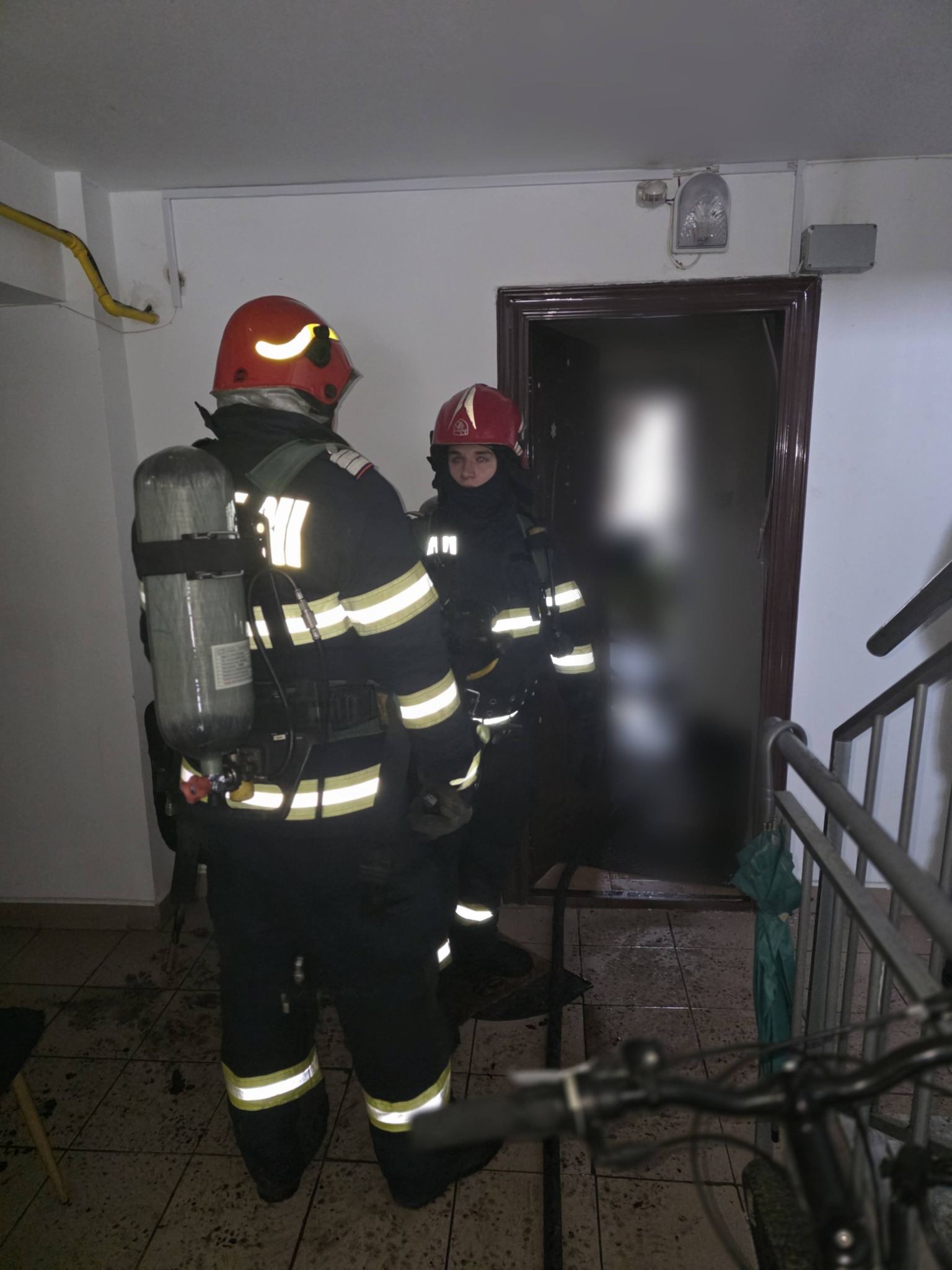 În acest context, 30 persoane s-au autoevacuat, iar cinci au fost ajutate de pompieri să iasă de pe scara blocului. Pompierii au salvat un cățeluș din locuința inundată cu fum.