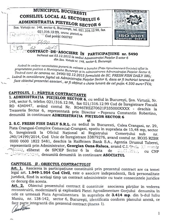 Practic, Primăria Sectorului 6 avea toate motivele să încheie socotelile Fresh Fish Daily SRL. De altfel, contractul conține o clauză care permite administrației locale să rezilieze unilateral înțelegerea, dacă în termen de 60 zile nu sunt îndeplinite obligațiile de plată.