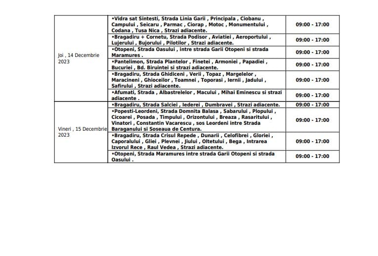 De asemenea, sunt programate întreruperi ale energiei electrice atât în Timișoara, cât și în localitățile din Timiș, în săptămâna 11 – 17 decembrie.