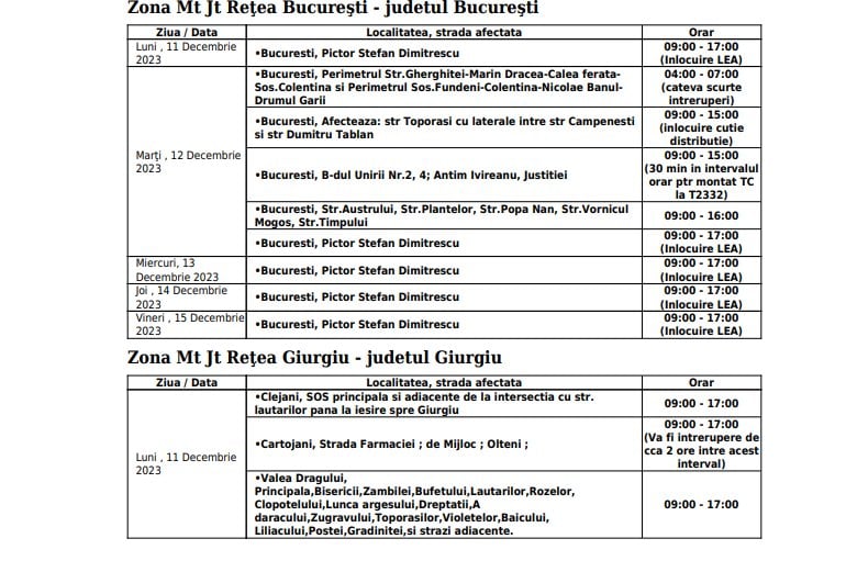 Aceste întreruperi vor fi temporare, însă vor afecta mai multe străzi din Capitală, din Giurgiu și din Ilfov. Rețele Electrice Muntenia anunță că se încearcă reducerea lucrărilor la cele necesare, pentru a minimiza disconfortul clienților.