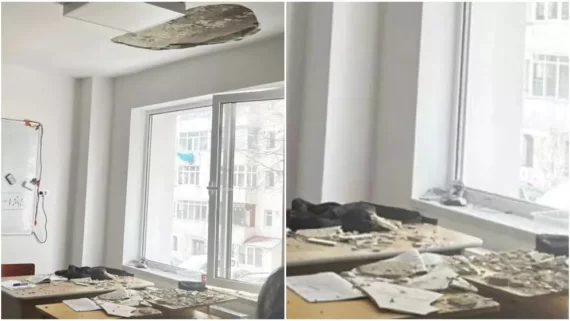 Au fost momente de spaimă, miercuri, într-un liceu din municipiul Botoșani, acolo unde bucăți din tavan s-au prăbușit într-o sală de clasă în care se aflau mai mulți elevi.