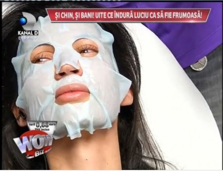 Frumoasa artista a acordat un interviu de pe patul dintr-un cabinet de infrumusetare. Luciu a dezvaluit secretul frumusetii sale. Cu patru copii acasa, filmari si concerte, cum sa mai arate bine? Asa ca apeleaza la un specialist. I-a facut mai multe injectii in pometi, apoi i-a aplicat un unguent si o masca speciala cu aminoacizi.