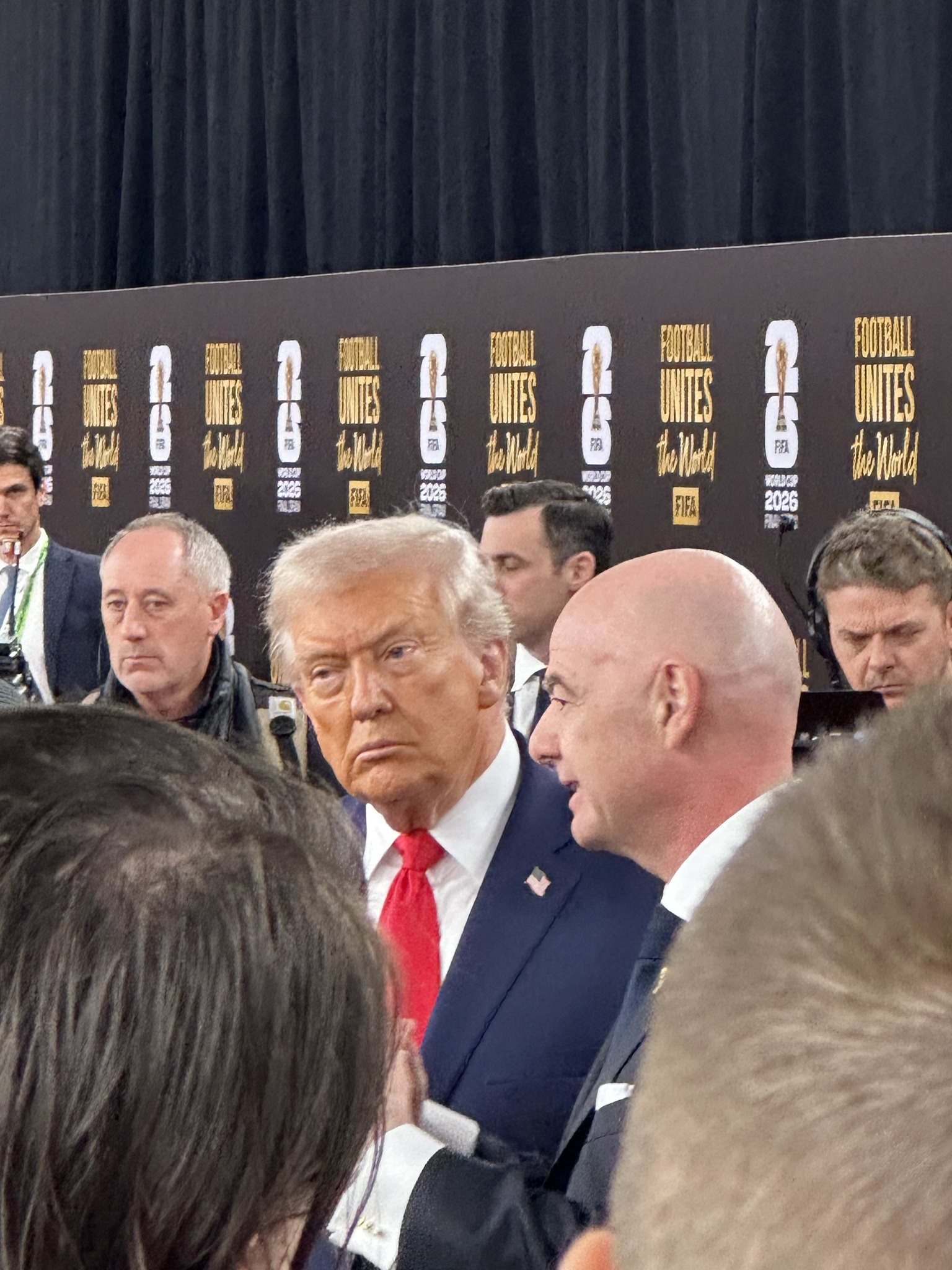 Președintele Donald Trump este prezent la tragerea la sorți de astăzi, care are loc la Centrul John F. Kennedy din Washington, DC, și a primit nou-înființatul Premiu FIFA pentru Pace.