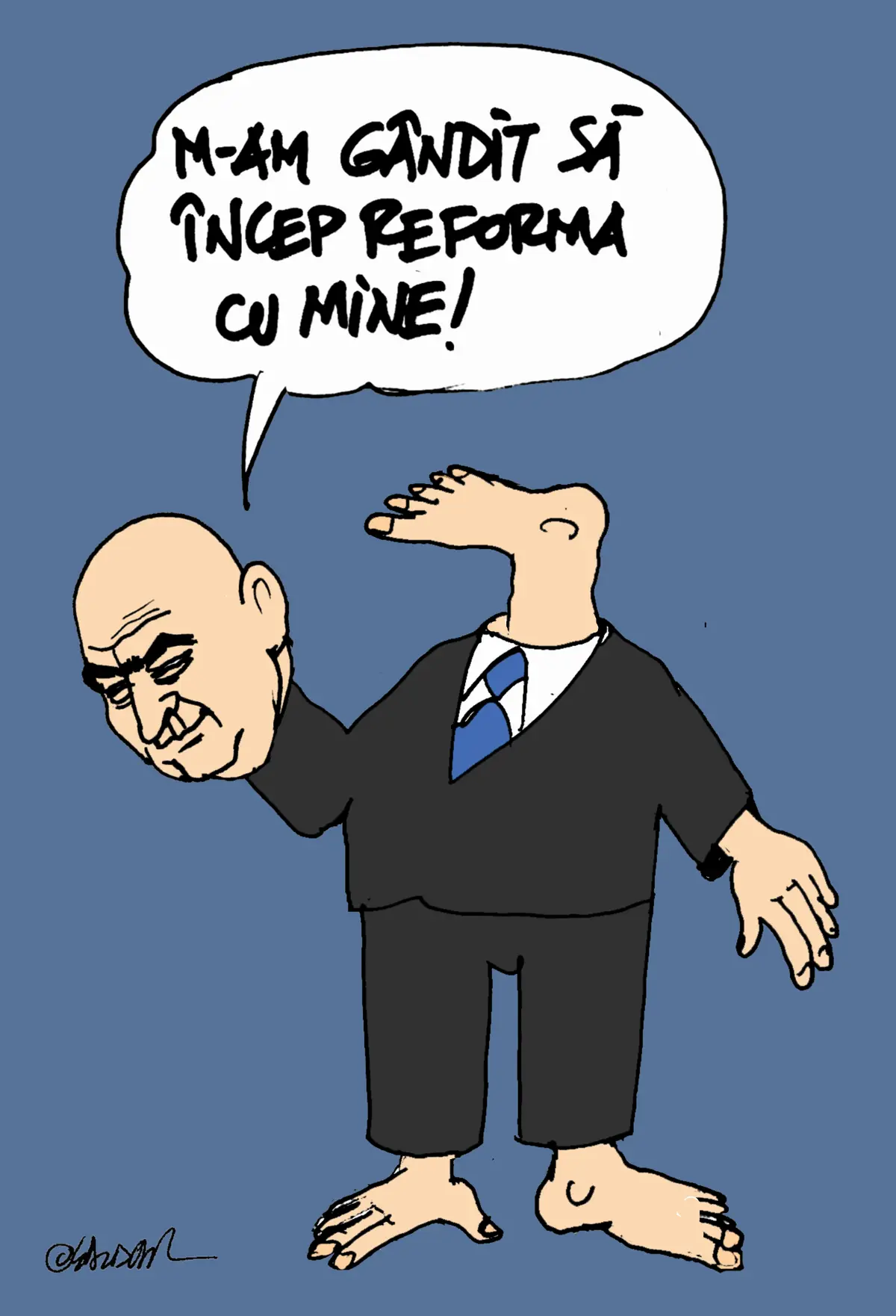 De 25 de ani ni se spune că urmează „marea reformă”. Reforma educației, reforma fiscală, reforma administrației. Și, totuși, niciuna nu s-a terminat vreodată. În țara asta, fiecare guvern promite că „va tăia răul de la rădăcină”, dar tot ce reușește e să ude buruienile. Ministerele sunt populate de neamuri, cumetri și „consilieri de imagine” care n-au citit o strategie economică în viața lor, dar știu perfect cum să-și treacă sporurile în fișa de post. România produce mai mulți „consultanți” decât ingineri, mai mulți „purtători de cuvânt” decât profesori titulari, și mai mulți directori decât angajați.