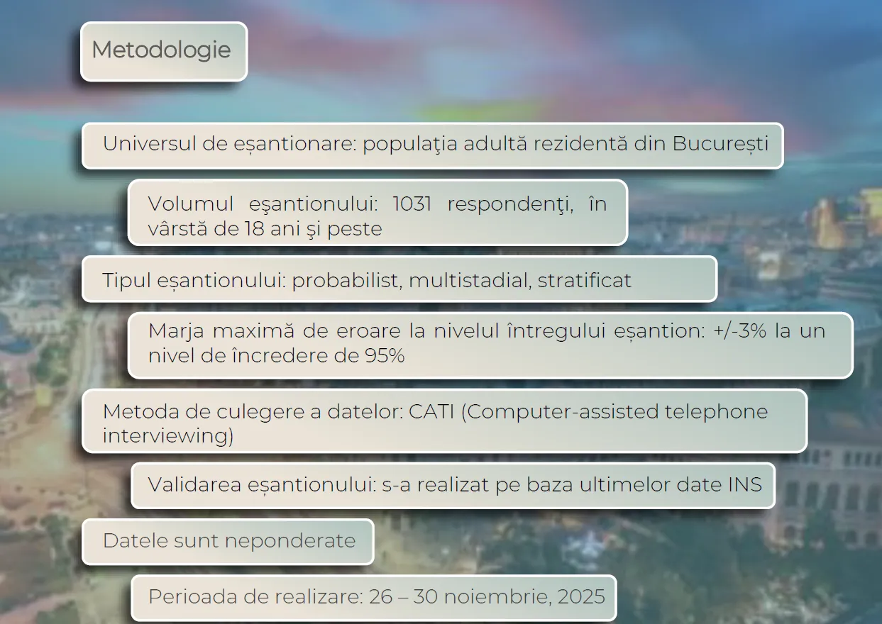 Sondaj CURS. Cursă extrem de strânsă pentru Primăria Capitalei. Cum arată top 3, cu doar câteva zile înainte de alegeri - Ziarul NationalSondajul a fost realizat în perioada 26-30 noiembrie, pe un eșantion de 1.031 de respondenți cu vârsta de 18 ani și peste. Marja de eroare este de ±3%, iar nivelul de încredere de 95%.