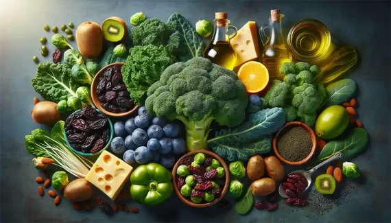 • K2 (menachinonă) – prezentă în alimente fermentate și produse de origine animală (iaurt, brânzeturi maturate, natto).