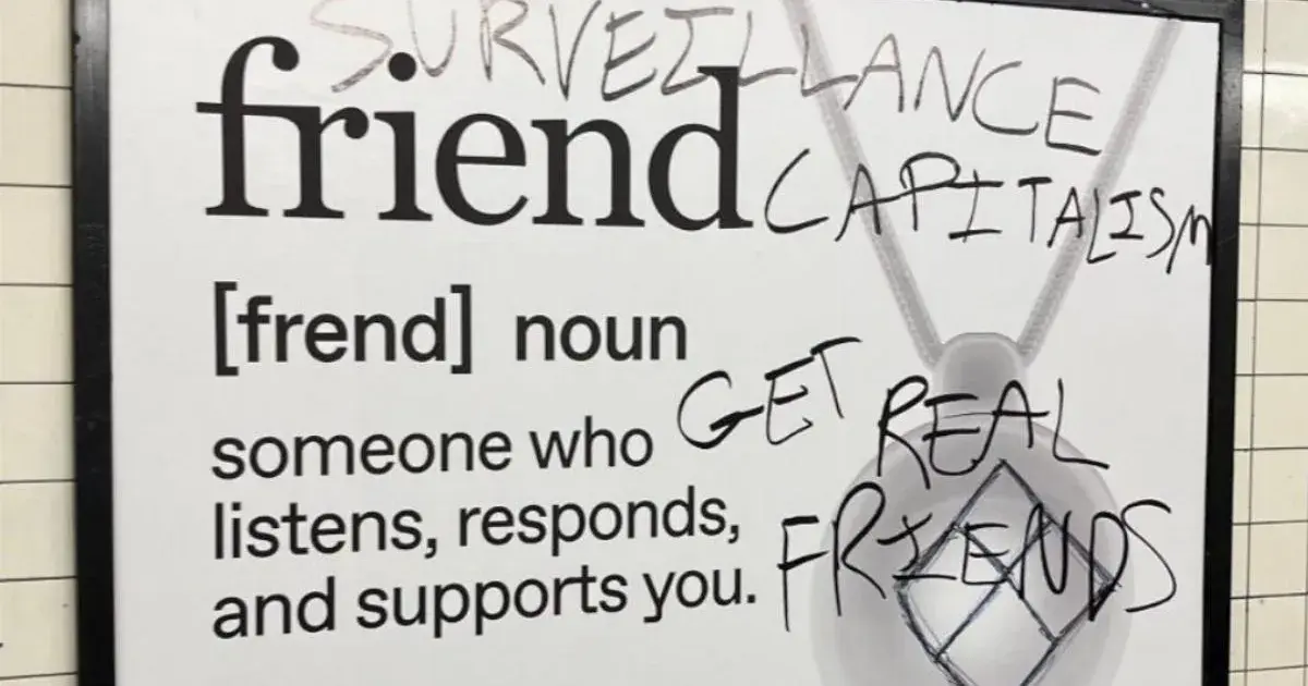 Un start-up „companion” IA, numit Friend, tocmai a investit peste un milion de dolari în cea mai mare campanie publicitară din istorie pentru metroul din New York, prezentându-și cel mai recent produs: un pandantiv care ascultă utilizatorii și le trimite mesaje text de susținere și sfaturi