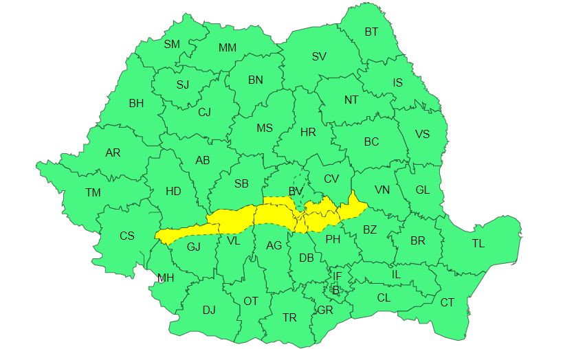 Și tot joi dimineață, ANM a emis o atenționare Cod galben de ploi abundente.